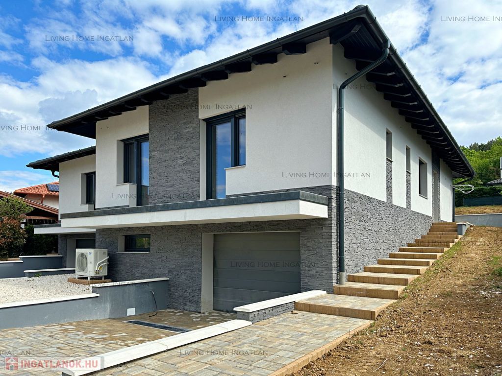 The basement level has a one-stall garage for the smaller one and a two-stall garage for the larger one with other storage rooms, boiler room. On the first floor of both apartments there are spacious living rooms with American kitchen and terrace and garden. The smaller apartment has 2 bedrooms with two bathrooms, but a third room can easily be added. The larger apartment has 3 bedrooms with 2 bathrooms. The rooms have a balcony with a beautiful panoramic view of the Pilis. The attic is suitable for additional storage.