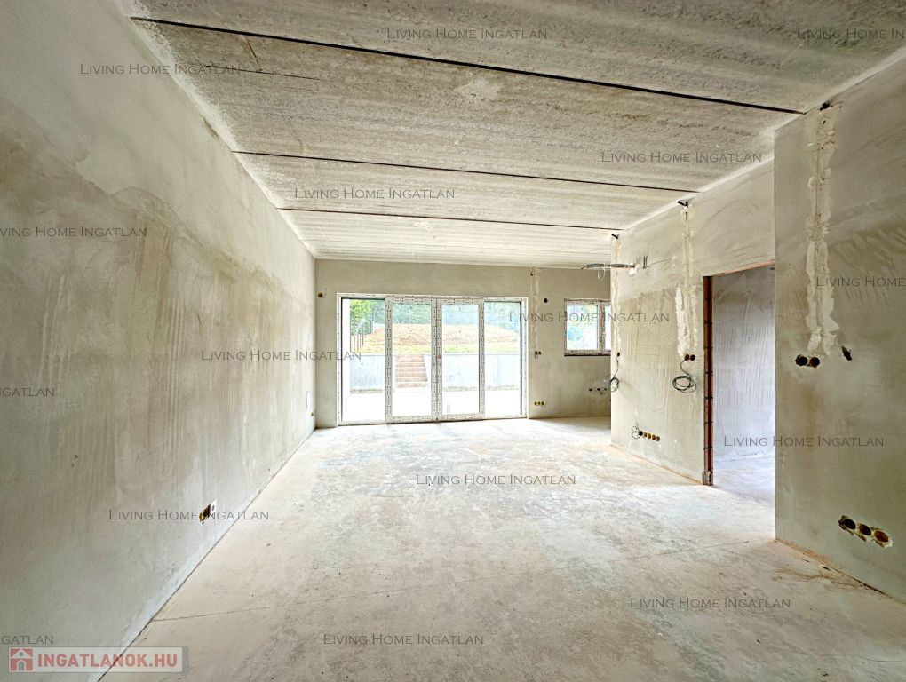 Az ikerfél 154 nm-es, duplakomfortos, 434 nm-es telekkel. A tulajdonos a ház mindkét felét saját részre kezdte építeni. Minőségi anyagok, átgondolt alaprajz, tágas terek jellemzik a lakásokat. A kert tereprendezése is megtörtént.
