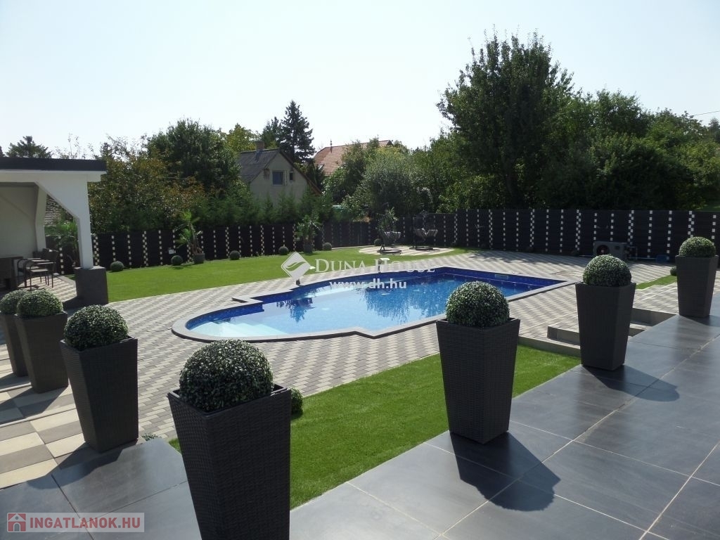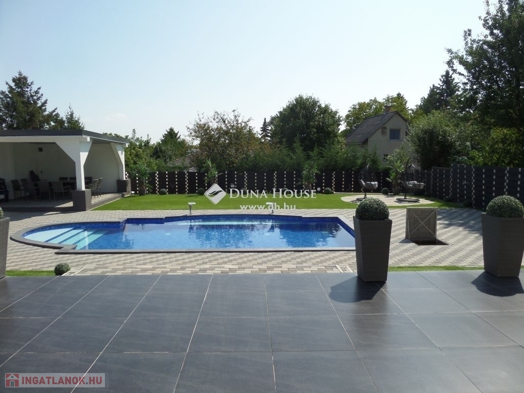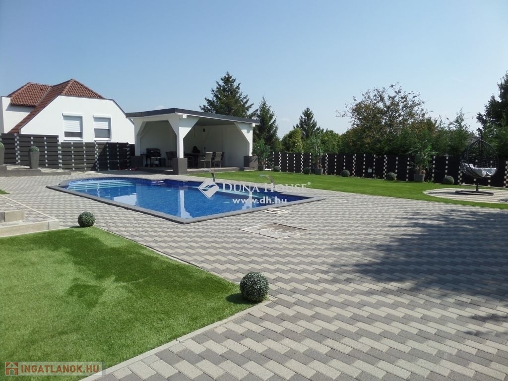 A kertben fúrt kút biztosítja a vízellátást, míg a fűtött, világított medence egész évben a kikapcsolódás helyszíne lehet.