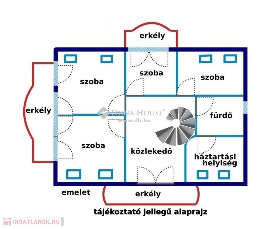 Az emeleten négy külön nyíló szoba található, melyek mindegyike tökéletesen megfelel egyéni igényeknek, legyen szó hálószobáról, dolgozószobáról vagy gyerekszobáról.
