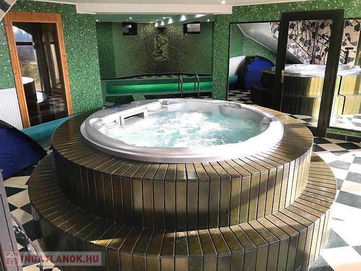 - Az alsó szinten kialakításra került egy nagy méretű garázs, amely 2-3 autónak biztosít beállási lehetőséget. Ezenkívül plusz Wellness részleg is van, ami minden igényt kielégíthet. - Medence, konditerem, fürdőszoba, mosókonyha, 6 fős szauna és egy 5 fős jakuzzi is.
