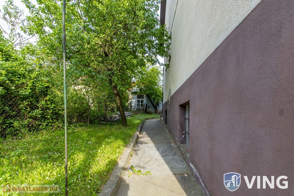 Az ingatlan két bejárattal rendelkezik, 100 m2 alapterületű, alatta szuterénnel, felette beépíthető tetőtérrel, a kertben önálló garázzsal valamint további gazdasági épületekkel, hatalmas cseresznyefával.