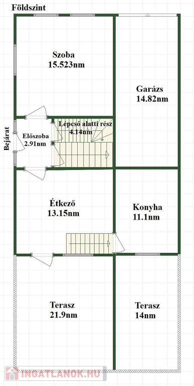 22 nm-es terasz, amely alatt egy 17 nm-es pince található