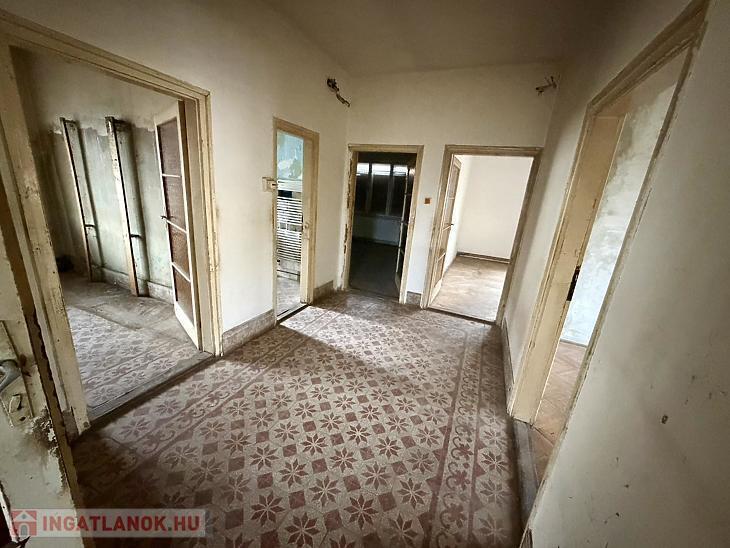 A felső szint külön bejárattal rendelkezik, így akár teljesen önálló lakrészként is használható. Jelenleg felújítandó állapotú, ami lehetőséget ad az új tulajdonosnak arra, hogy saját ízlésének és igényeinek megfelelően alakítsa ki. A tágas előszobából egy külön WC nyílik, majd egy közlekedőn keresztül érhetők el a további helyiségek: egy fürdőszoba, egy konyha, valamint három egymástól független, nagyméretű szoba.