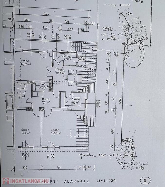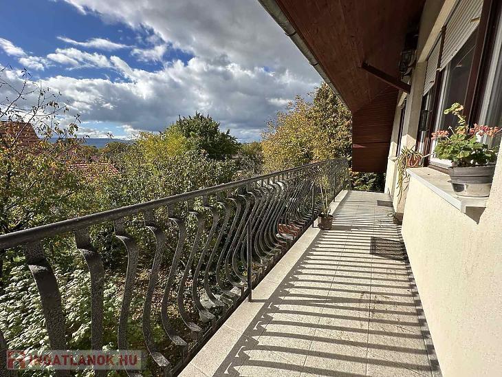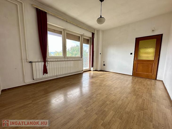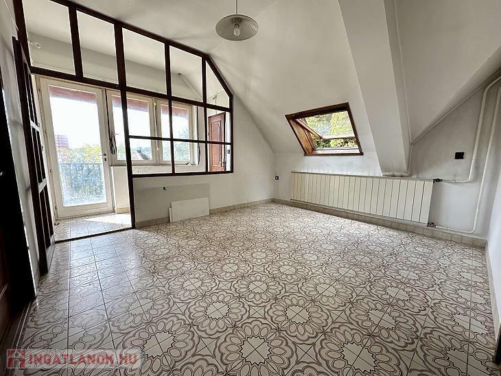 A felső szint szintén külön bejárattal rendelkezik, elosztása: előszoba, nappali, három hálószoba, konyha, fürdőszoba, külön WC, valamint egy erkély. Itt dupla üvegezésű fatokos ablakok találhatók.