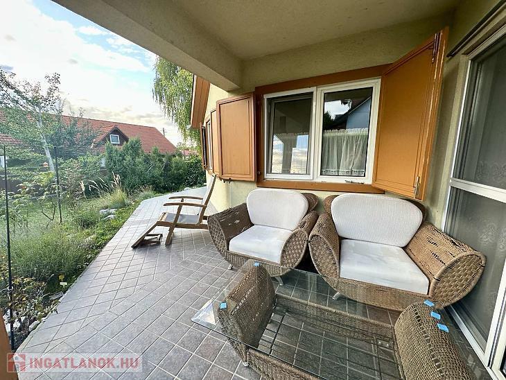 A házhoz két terasz is kapcsolódik, melyek közül az egyik fedett – kiváló helyszínt biztosít a kellemes nyári estéken való pihenéshez vagy baráti összejövetelekhez.