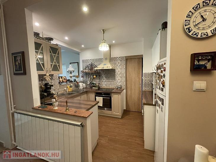 Az ingatlan további előnyei közé tartozik a 2 darab spejz, valamint a gépesített, beépített konyhabútor.