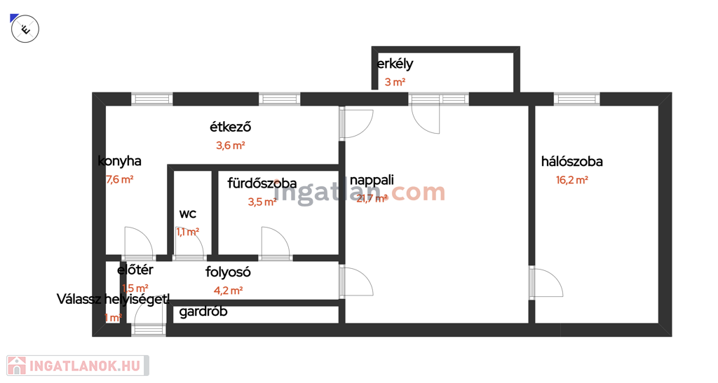 A lakás erkéllyel rendelkezik, amely egy csendes, belső udvarra néz, így ideális nyugodt otthonra vágyóknak.