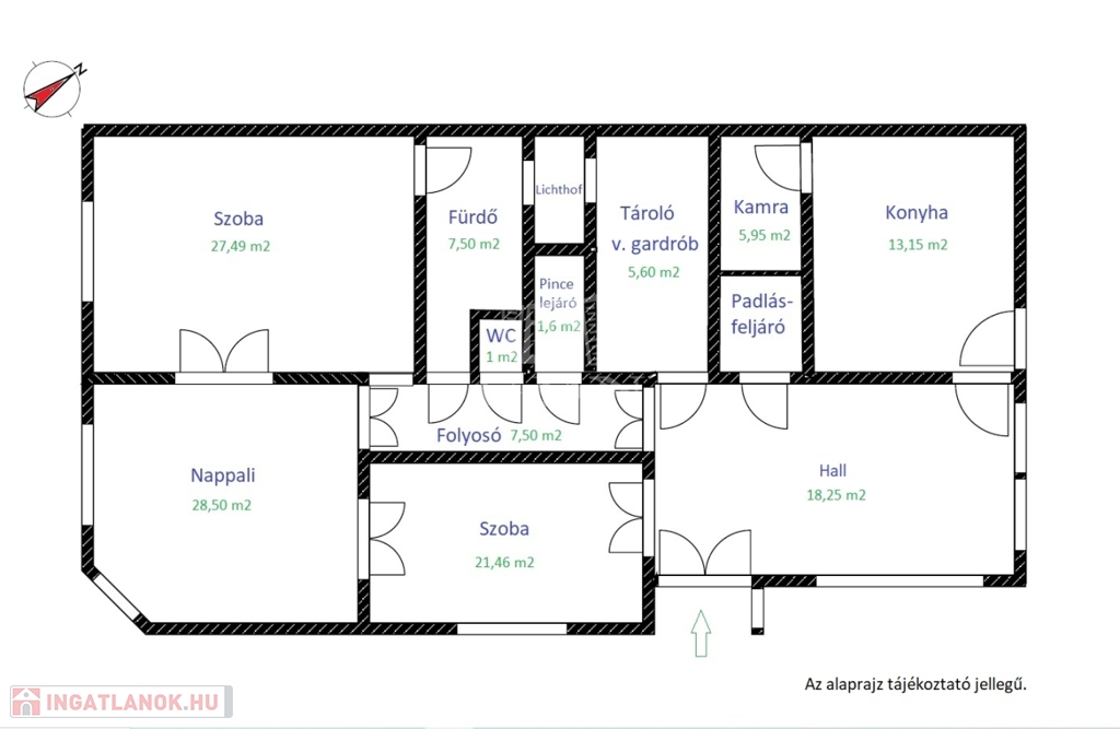 Az épület alatt egy 35 m2-es pince is található, amelyet a lakásból lehet megközelíteni.