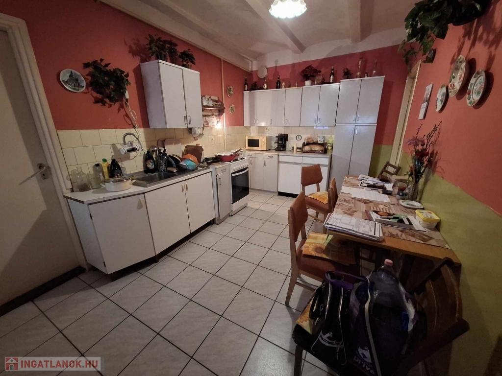 Gödöllő és Veresegyház szomszédságában VÁCEGRESEN a központban eladó 4 nagy szobás családi ház (127 m2) melléképülettel (30 m2) és 2 db garázzsal (30 m2). Az ingatlan lakható állapotú - de felújítás szükséges! Összközműves, az otthon melegét gázkonvektoros fűtés adja és 1 kandalló is beszerelésre került. 2007-ben a vízvezetékek cseréje megtörtént valamint a központi csatornára való csatlakozás 2015-ben vált valóra. Nappali 3x16 amper és éjszakai 3x16 amper is be lett kötve. Melegvizet villanybojler adja. Az épületbe 2 bejárat is ki lett alakítva. Az első a szobák előtt, a második bejárat pedig a konyha előtt. A főbejárat a fedett teraszon keresztül vezet egy tágas előszobába. Innen balra nyílik a konyha étkező, melyből egy nagyobb kamra/tároló lett kialakítva. Jobbra is található egy másik nagy kamra, mely akár még szobává is alakítható. A folyosón tovább haladva balra a konyha mellett egy kisebb tároló található, ahol a padlásfeljárót is találjuk, mellette pedig a fürdő/mosdó helyiség lett kialakítva. Tovább haladva az egyik hálószoba található balra, majd mellette egy nappali szoba, melyből az egyik utcafronti nagy szoba nyílik. Mellette külön bejárattal a másik nagy szoba található.