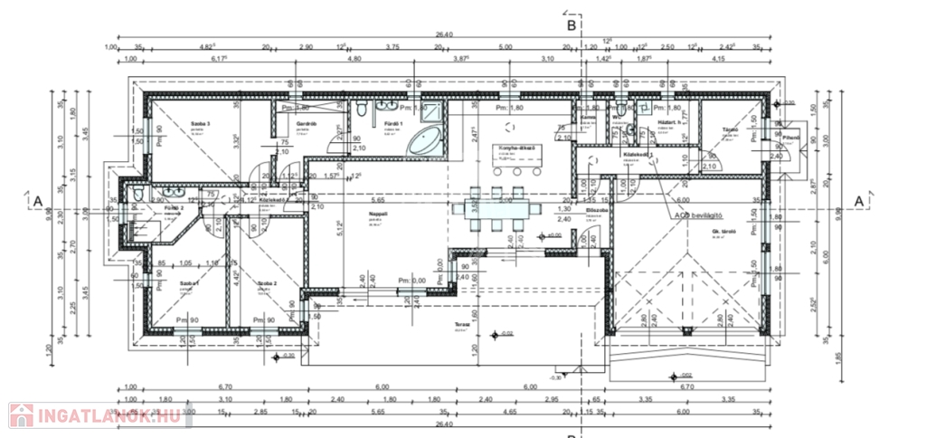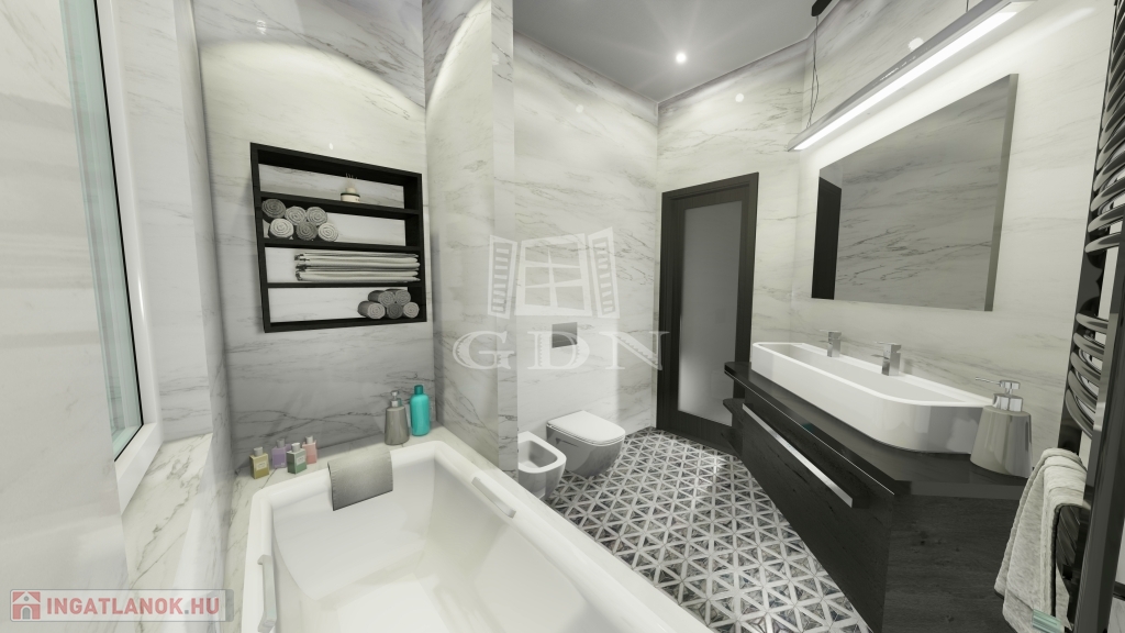 Jelen tervek szerint lakás alapterülete 151,33 m2 + 36 m2-es garázs + 43 m2-es terasz.