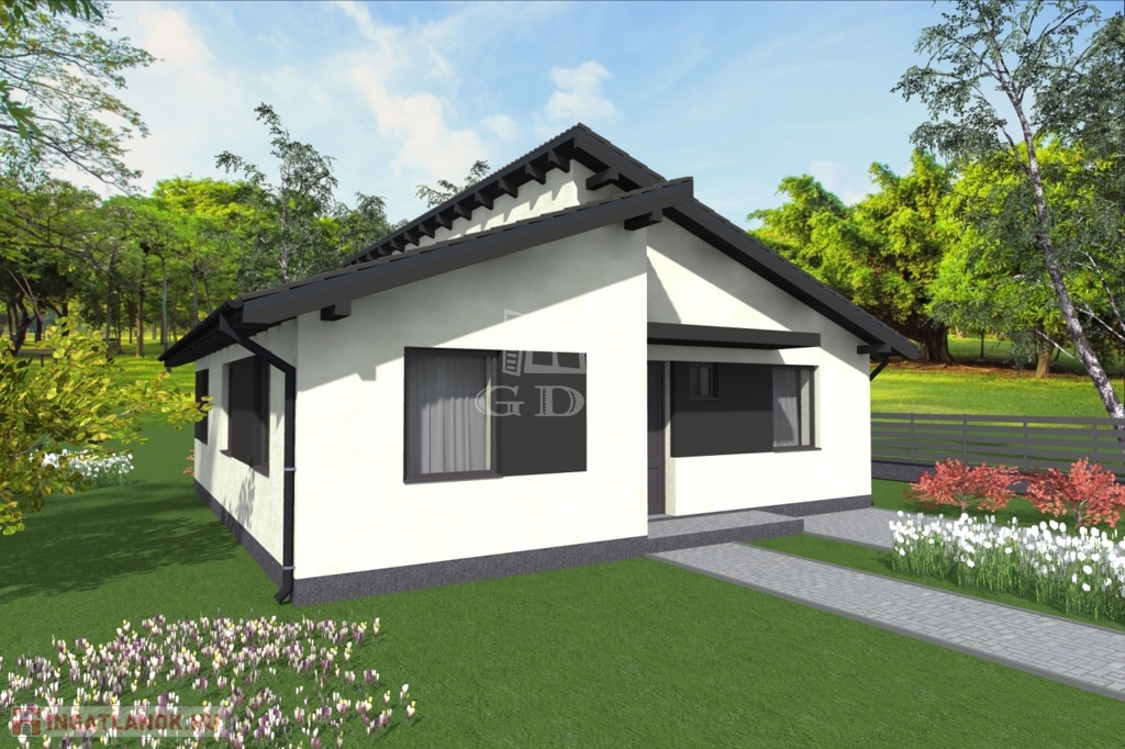 The cold and warm tiling, the windows (size, shape), the front door are optional, the colouring of the house and the fence can be completely customized. The internal partition walls can be moved during the construction.