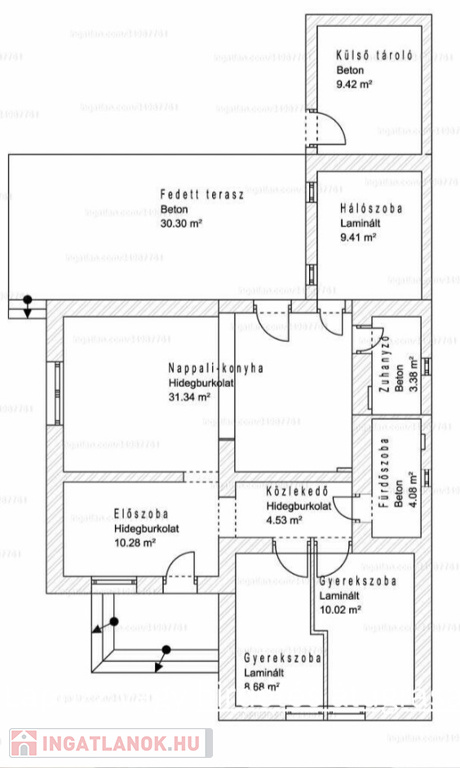 •30 m²-es terasz, víz- és lefolyókiállással – akár kültéri konyha is kialakítható
