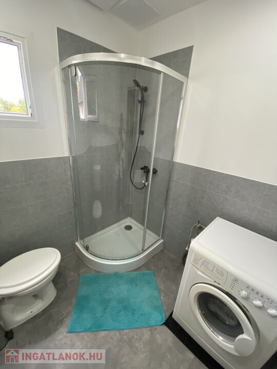Az épület teljesen újszerű állapotú, 2 szoba + nappali, konyha-étkező, fürdőszoba található benne, víz, villany közművekkel felszerelt, zárt tartályos emésztővel, fúrt kúttal a kertben.