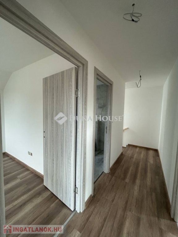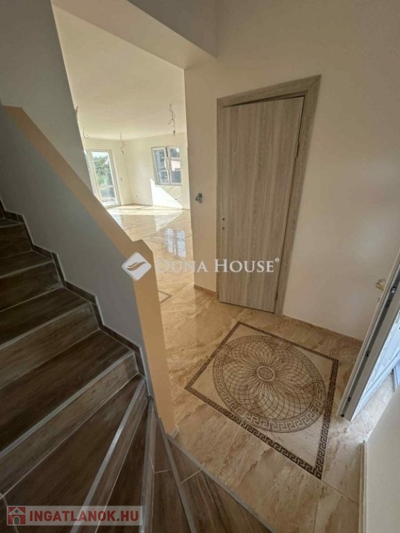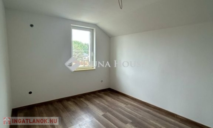 Kialakítása: földszinten: szoba, tágas nappali+konyha, zuhanyzó+wc, gépészet, nyitott terasz.emeleten: 3 szoba, közlekedő, tágas fürdő+wc