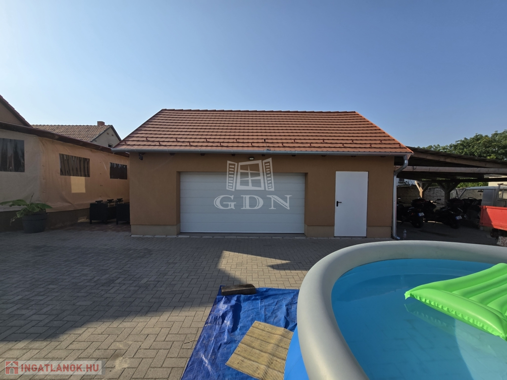 50 m²-es garázs elektromos kapuval és szerelőaknával, melynek tetőtere tárolásra vagy akár beépítésre is alkalmas,
