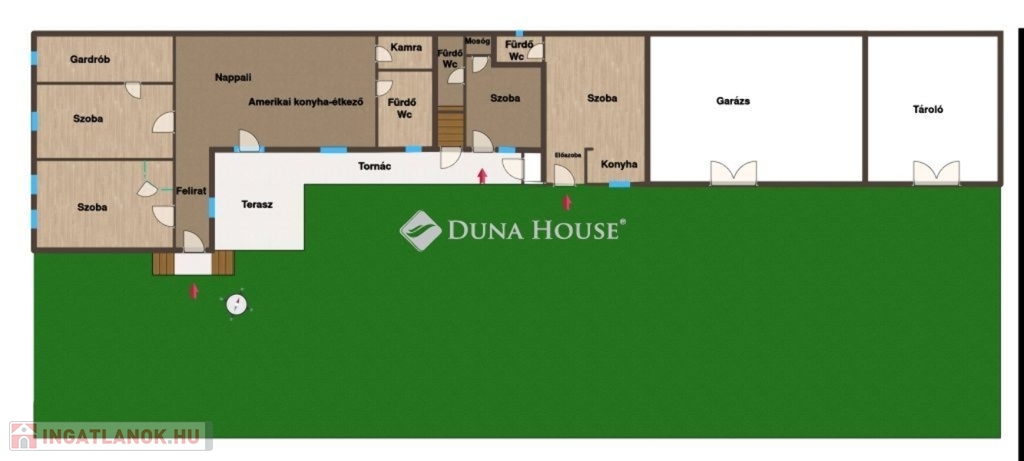 Amerikai konyha+nappali, 2 szoba, gardrób, fürdő, kamra
