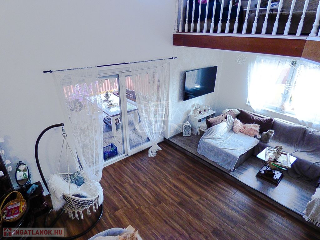 A földszinten egy tágas, nagy belmagasságú (5,4 m), galériázott nappali, hálószoba, étkezős konyha, kamra, wc, fürdőszoba és egy fedett terasz (15 nm) kapott helyet.