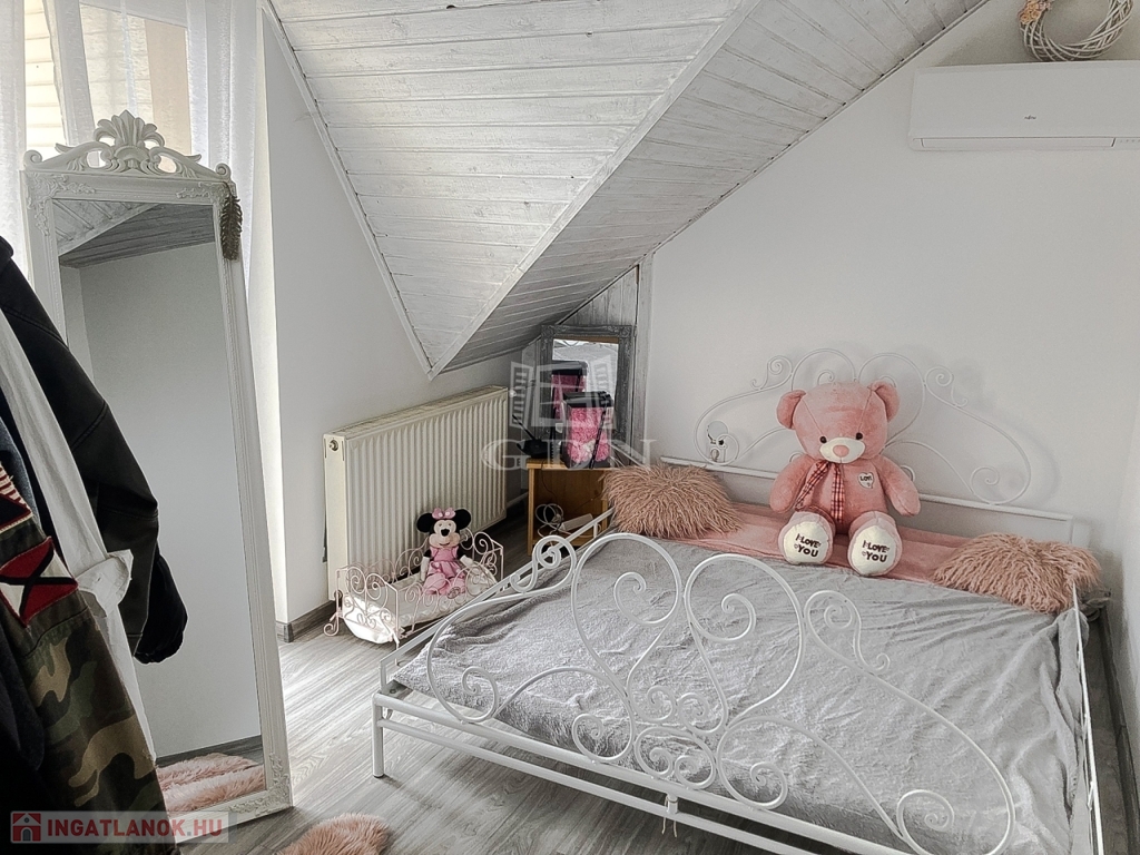 Vecsés Felsőhalom részén, csendes mellékutcában, 1998-ban épült, 370 nm-es önálló telken lévő, bruttó 227 nm-es (70 NM-ES PINCE + GARÁZS + 14 nm IRODAHELYISÉG) , 3 szintes, vasbeton födémes, szigetelt (10 cm dryvit), 4 szobás, felújított állapotú, gáz cirkó (kondenzációs, Bosch), - cserépkályha fűtéses, hűtő fűtő klímával, riasztóval felszerelt, thermo nyílászárós (redőnnyel), Dél - Keleti fekvésű, tehermentes családi ház eladó.