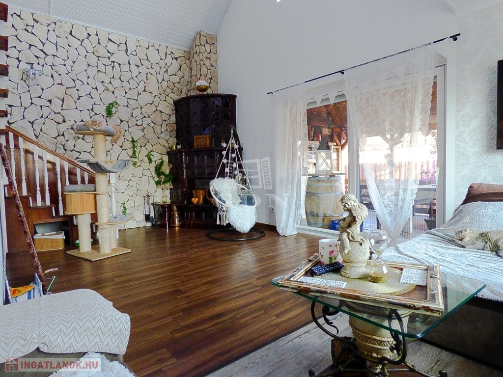 A kert kikapcsolódásra, pihenésre alkalmas, kisebb medencének is van hely a terasz mellett, továbbá fúrt kút is megtalálható.