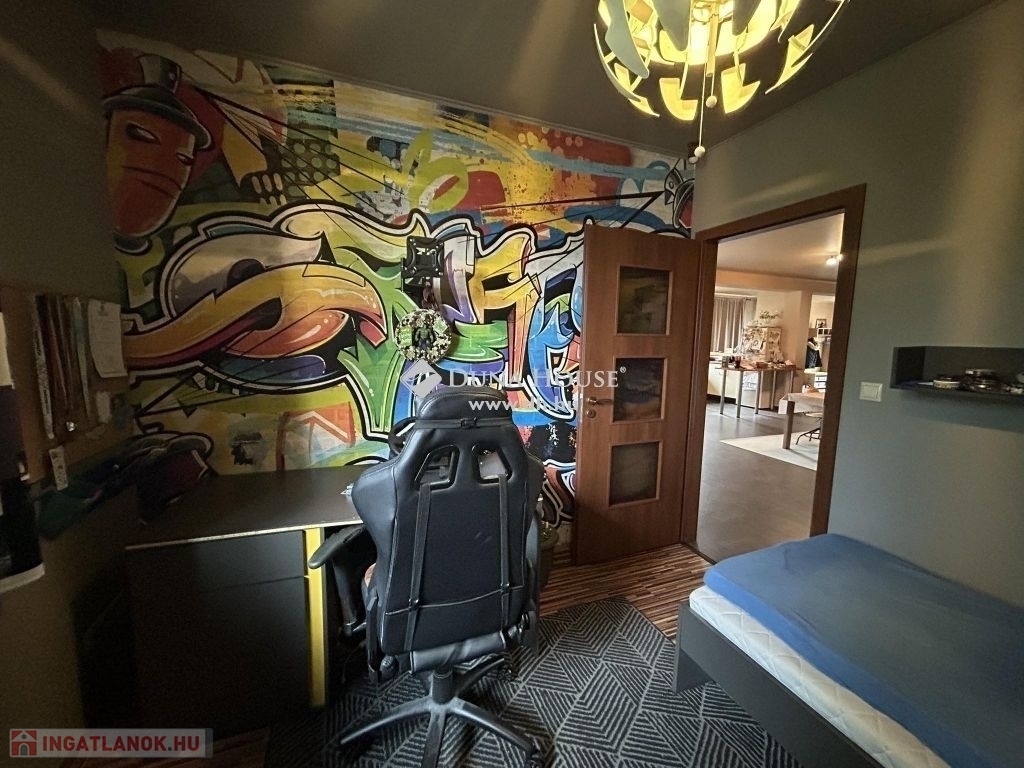 Extra: riasztó, színes nyílászzárók kívül belül, mosható falak mindenhol, fűtőtt rámpa lejáró az aszfalt alatt, ipari áram, központi porszívó, gránit párkányok mindenhol, elektromos nagykapu és kiskapu, vicolorral borított udvar, öntöző rendszer, sütögetési lehetőség, örökzöldek ékesítik az udvart.