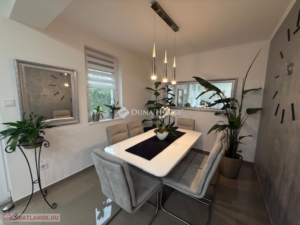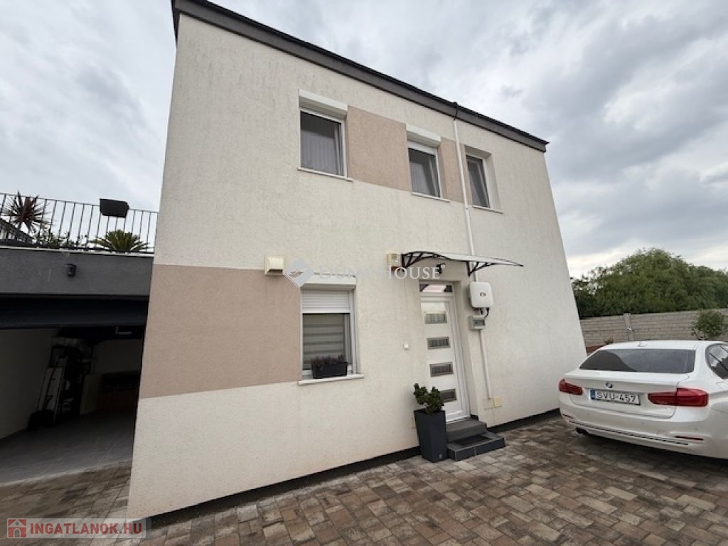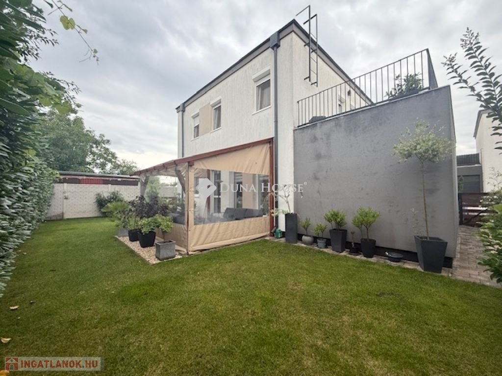 Vecsés egyik közkedvelt zárt lakóparkjában kínálom megvételre ezt a csodaszép ékszerdobozt , melybe valóban csak költözni kell !!!A Market Centrálhoz közel kínálom megvételre ezt a 131 nm alapterülettel rendelkező ingatlant a hozzá tartozó 263 nm kerttel. Az épület 2020-ban épült , Porotherm 30 as K téglából, rajta 10 cm grafit szigetelléssel és fehér nemesvakolat záróréteggel ellátva. Az ingatlan kialakítása a következő: Az ingatlan alap területe 54 nm mely 2 szinten összesen 96 nm lakóteret biztosít.Ezen felül van egy nyitott terasz mely 19,5 nm és egy 15,35 nm alapterületű garázs is mely a lakáshoz tartozik. NINCS KÖZÖS FAL EGYIK INGATLANNAL SEM A LAKÓPARKABAN!!!A telek össz.: alap területe 263 nm melyből ha kivesszük a lakó épületet, a fent maradó 180 nm saját kertként funkcionál. A képeken jól kivehető, hogy körbejárható az ingatlan , melynek a kert része gyönyörűen füvesített. A kertben található egy kisebb terasz mely télen is kifogástalanul használható , mert ponyvával téliesítette a tulajdonos. Az ingatlan korszerű , minden a mostani építési szabályzatnak megfelelően épült fel, mindez gyönyörű kivitelezésben. A lakásban kivétel nélkül minőségi és Prémium anyagok kerültek beszerelésre. Ez magába foglalja a burkolatokat , szanitereket, beltéri ajtókat és mindent ami kielégítheti az igényesség fogalmát !A nyílászárók részben elektromos, részben mechanikus redőnnyel + szúnyoghálóval felszereltek! Az ingatlanban található az alsó szinten -Amerikai konyhás nappali-Étkező-Előtér-Fürdőszoba épített zuhannyal -LépcsőtérEmeleten -3 db szoba -fürdőszoba káddal ellátva -Közlekedő -Hatalmas nyitott terasz Ezen felül az épület bal oldalában egy elektromos kapunyitással rendelkező zárt garázs !A lakás fűtéséről és melegvíz ellátásáról , gáz cirkó gondoskodik padlón keresztül történő hőleadással. A fürdőszobákban + törölköző szárítók lettek felszerelve. A kertben automata öntöző rendszer van. Az ingatlan a képeken látható berendezett állapotban kerül értékesítésre , így ide valóban csak a bőröndöt kell behúzni a vásárlás után :)Amennyiben hirdetésem felkeltette érdeklődését , keressen bizalommal és nézzük meg együtt ezt a remek ingatlant !