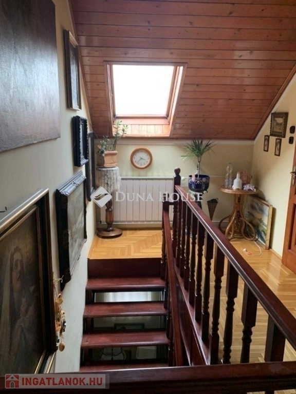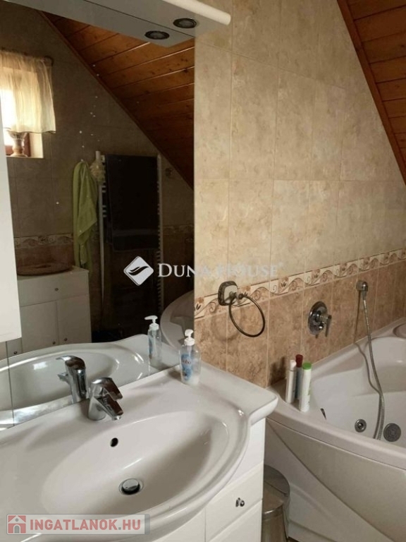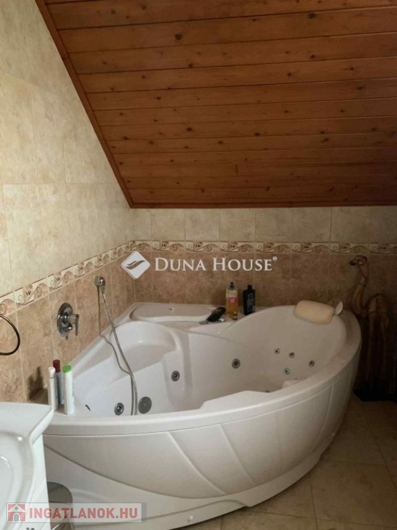 A felső szint három hálószobája közül kettő erkélykapcsolatos, szép nagy ablakokkal, így a reggeli fény gyengéden ébreszt, míg az esti kilátás a csillagos égre néz. A fürdőszoba sarokkáddal, külön WC-vel és beépített tárolókkal kényelmes és elegáns, tökéletesen illeszkedik a ház stílusához.