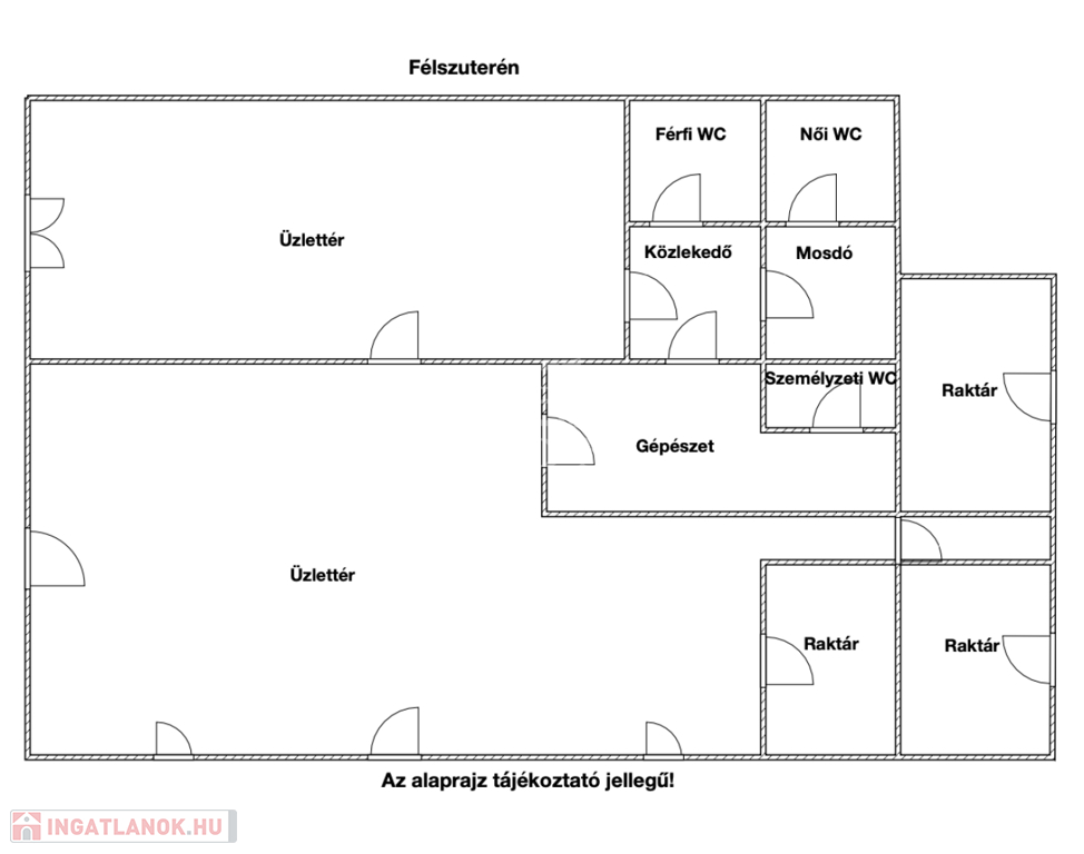 A három szintes épület az alábbi módon került kialakításra: az alsó szinten (félszuterén szint) egy üzlethelyiség található kiszolgálópulttal, eladótérrel, raktárakkal és mellékhelyiségekkel, míg a magasföldszinten négy szoba és egy konyha kapott helyet. Az első emeleten további négy szoba található, így az ingatlan elrendezése kiválóan alkalmas akár lakhatásra, akár üzleti célú működtetésre is. Az épület mellett két különálló tároló is rendelkezésre áll.