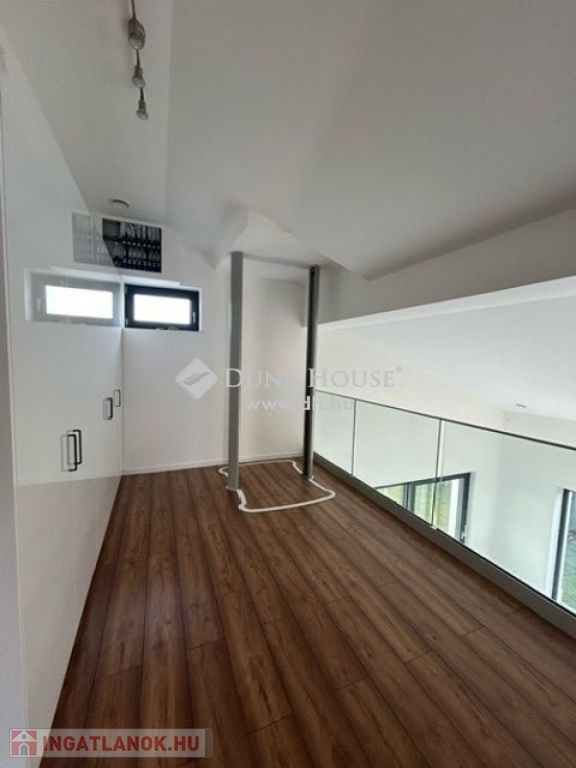 emeleten : 3 tágas szoba, közlekedő. fürdő+wc, előtér a liftből kilépve ahol üvegkorlát található a földszintre nézve.