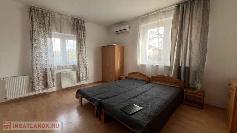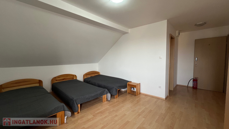 Minden szobában ágyak ,szekrények, számzáras ajtók, klímák és minden szobához fürdő wc-vel, meleg víz 80l Bosch bojlerről.
