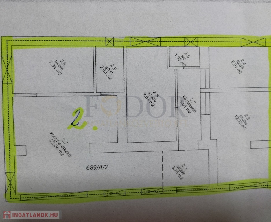 Az ingatlan nyélen keresztül megközelíthető, nettó 69 m² alapterületű, 2 szobás lakás, amelyhez 500 m² saját telekterület tartozik.