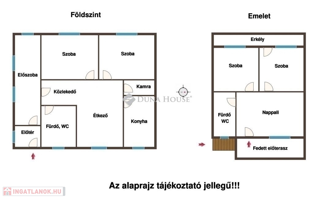 Emelet (külső, fedett lépcsőn megközelíthető):
