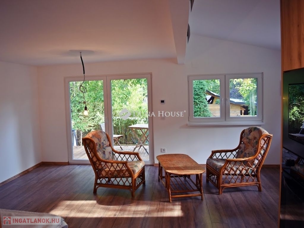 A ház alapterülete 58 nm, melyhez a déli homlokzaton egy 20 nm-es terasz épült, így húsvéttól november elejéig élvezheti itt nagyobb társaságban is a csendet és a jó levegőt.