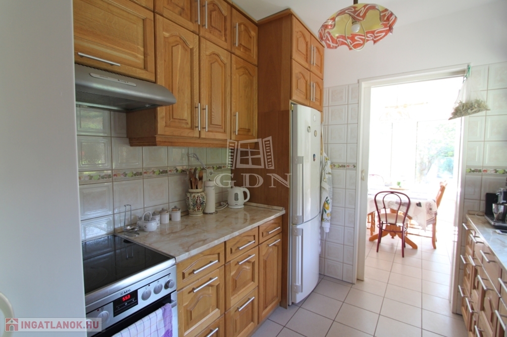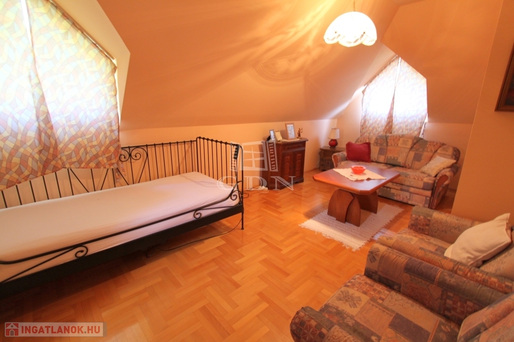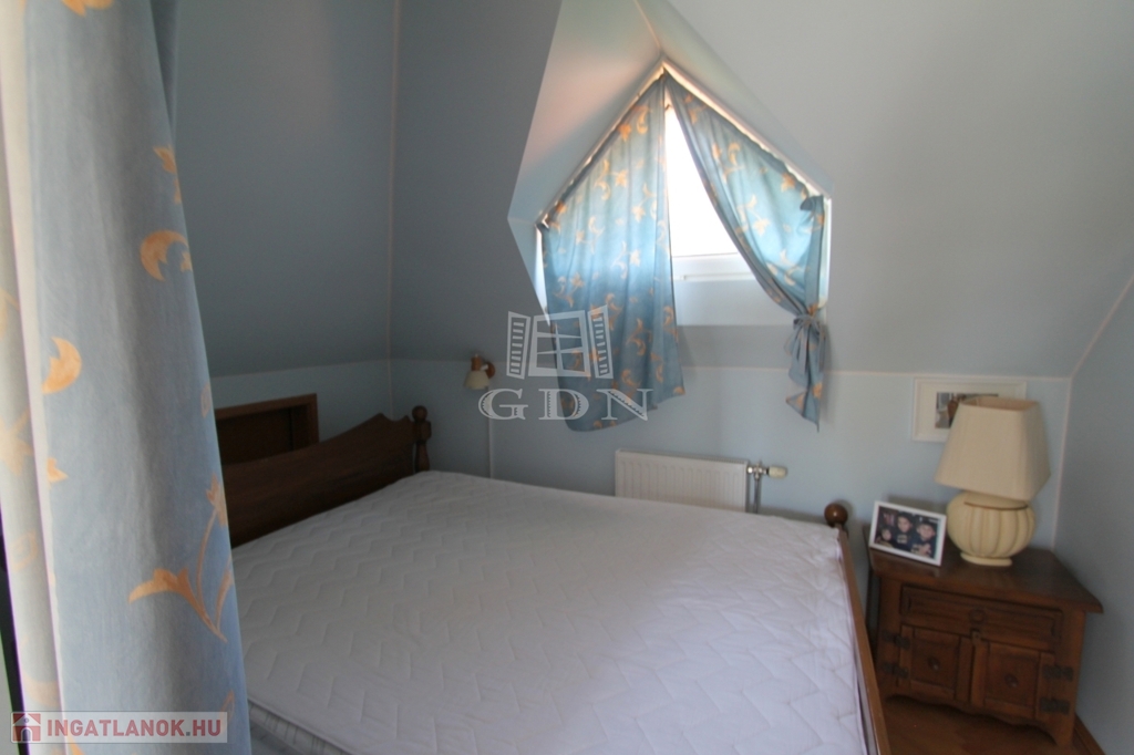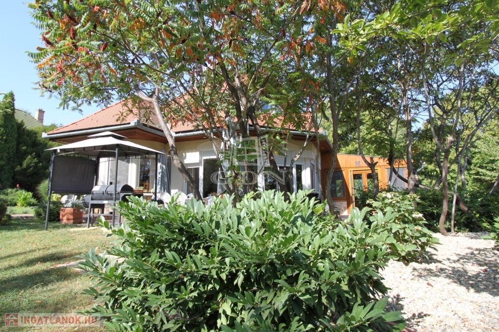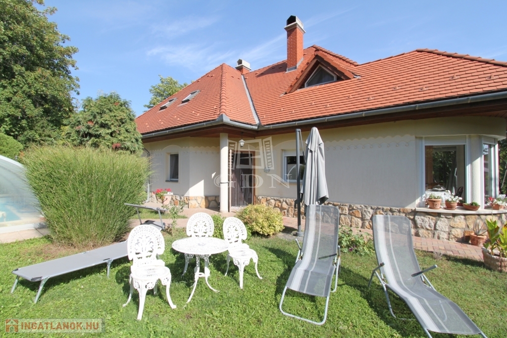 4455. Velencén a Bencehegyen, csendes kertvárosi környezetben, 1664 m2-es parkosított telken 2000-ben épült, háromszintes, 161,4 nm lakótérrel + 110,3 nm pinceszinttel rendelkező családi ház eladó. Autók parkolására a pinceszinten található 37 nm nagyságú garázsban van lahatőség. Ezen a szinten található, tároló helyiség, fittnesz terem, kazánház. A földszinten tágas nappali, étkező, konyha, hálószoba, gardrób, háztartási helyiség, fürdőszoba, a tetőtérben nappali + hálófülke, gardrób, fürdőszoba, hálószoba került kialakításra. A parkosított kertben öntözőrendszer lett kiépítve, a ház biztonságáról risztó és kamerarendszer gondoskodik. Ár: 179 MFt