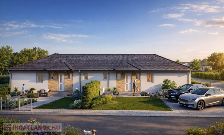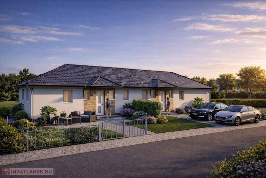 Az ingatlan - ikerházi kialakítása ellenére - saját, körbekerített kertrésszel, külön bejárattal és önálló kocsibejáróval rendelkezik, így a mindennapokban valódi privát életteret biztosít. 80 m²-es lakóterében praktikus elrendezésű három szoba és egy tágas nappali ad kényelmes életteret akár nagyobb család számára is. Az 500 m²-es telek kellemes méretű kertet kínál, a térkövezett kocsibeálló a mindennapi használatot teszi egyszerűvé és kényelmessé.