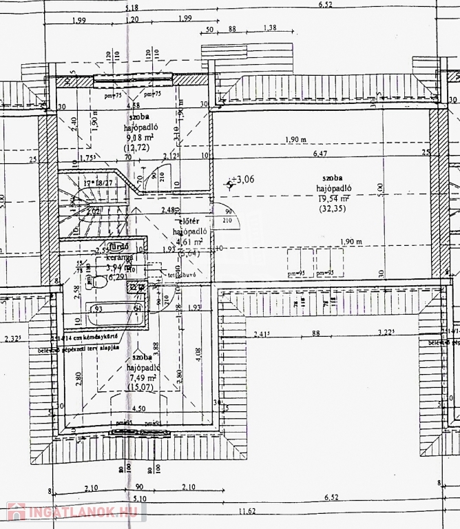 Az épület 2006-ban épült, beton alapra, 38 cm-es Phorotherm téglából, 7 cm dryvit szigeteléssel, beton födémmel, betoncserép fedéssel. Épület körbe műanyag thermo nyílászárókat kapott, elektromos redőnnyel és rovarhálóval ellátva. Fűtésről és melegviz ellátásról gázkazán gondoskodik, mindkét szinten padlófűtéssel. A felsőszintre vezető lépcső, korlátja és fa burkolata az ingatlan tartozéka, rendelkezésre is áll, csak ha az új tulajdonosnak, kell megcsináltatnia.