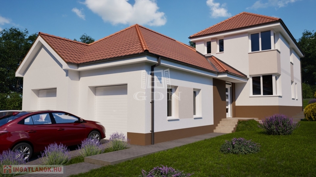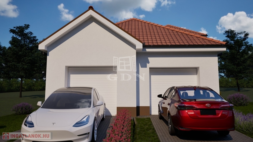 A lakótér nettó 120 m2 + 22 m2 garázs + 17,4 m2 terasz + 2,53 m2 fedett tároló.