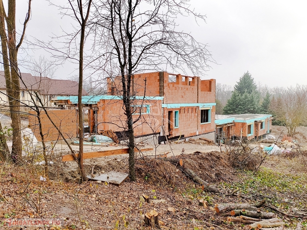 Veresegyház, Hegyek városrész csendes, kertvárosias részén, cca. 450 nm-es telek területtel, Új építésű, bruttó 181 nm-es, 4 szobás (nappali + 3 hálószoba, külön konyha, étkező), két szintes, vasbeton födémes (az emeleten is), hőszivattyús (levegő - vízes) padló fűtéssel, Dél - Keleti fekvésű, műanyag thermo dió színű (3 rétegű, 7 légkamrás) nyílászárós, szigetelt (15 cm dryvit), új építésű, a másik féltől teljesen elszaparált, garázzsal elválasztott, a másik lakóegységgel egy telken lévő családi ház (első) eladó.
