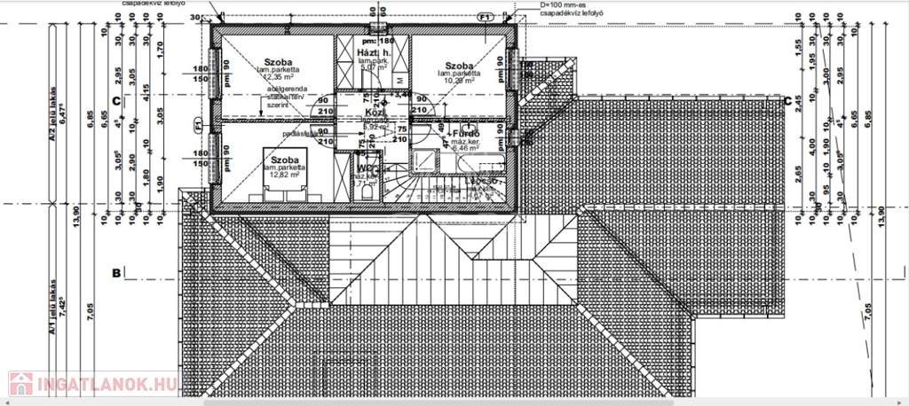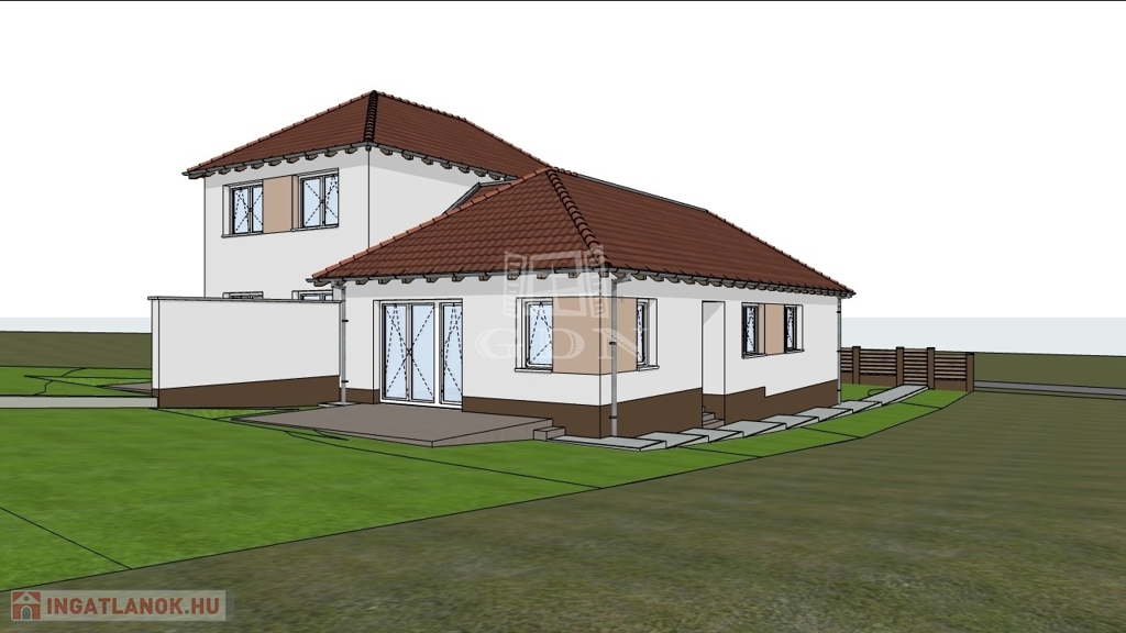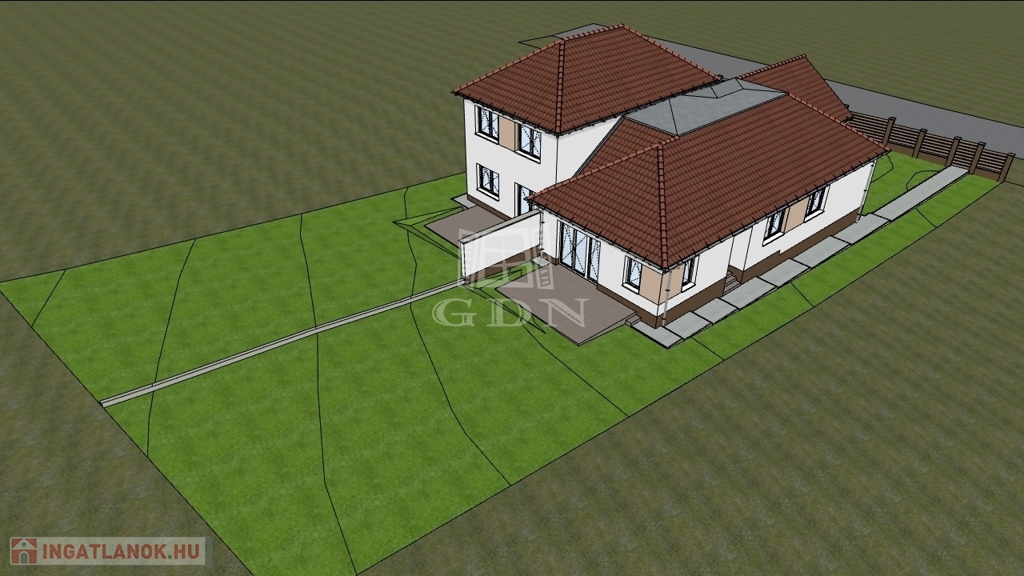 Ugyanitt az ikerház másik fele is eladó, amely 1 szintes, 4 szobás épület, hasonló műszaki tartalommal, amelynek az irányára: 145 800 000 Ft