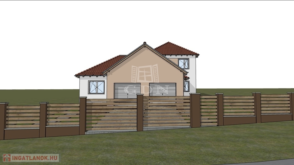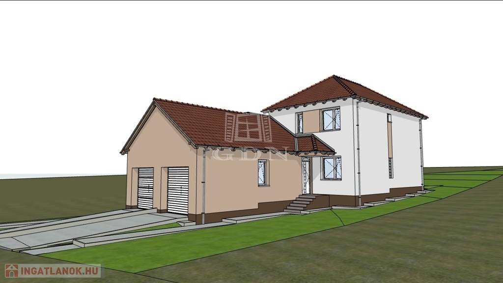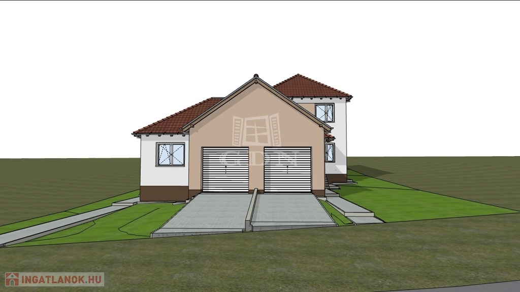 Jelen ikerház fél nettó 145 nm hasznos alapterületű két szintes épület + 20 nm-es fedett garázs, valamint 20 nm-es terasz és fedett belépő.