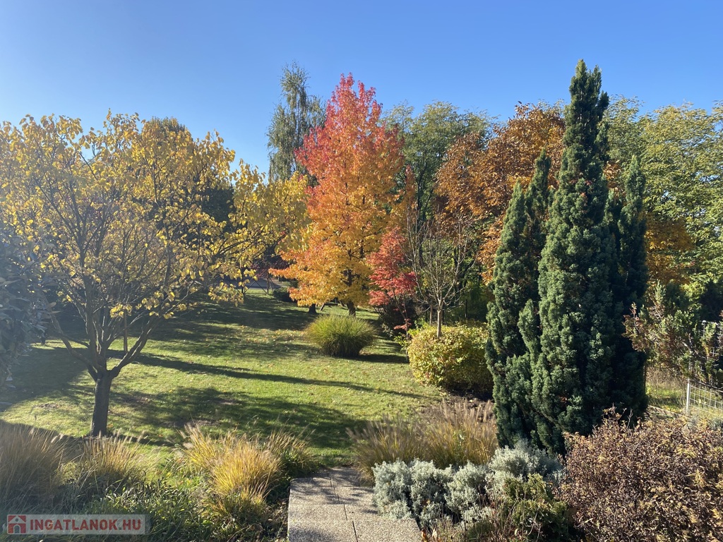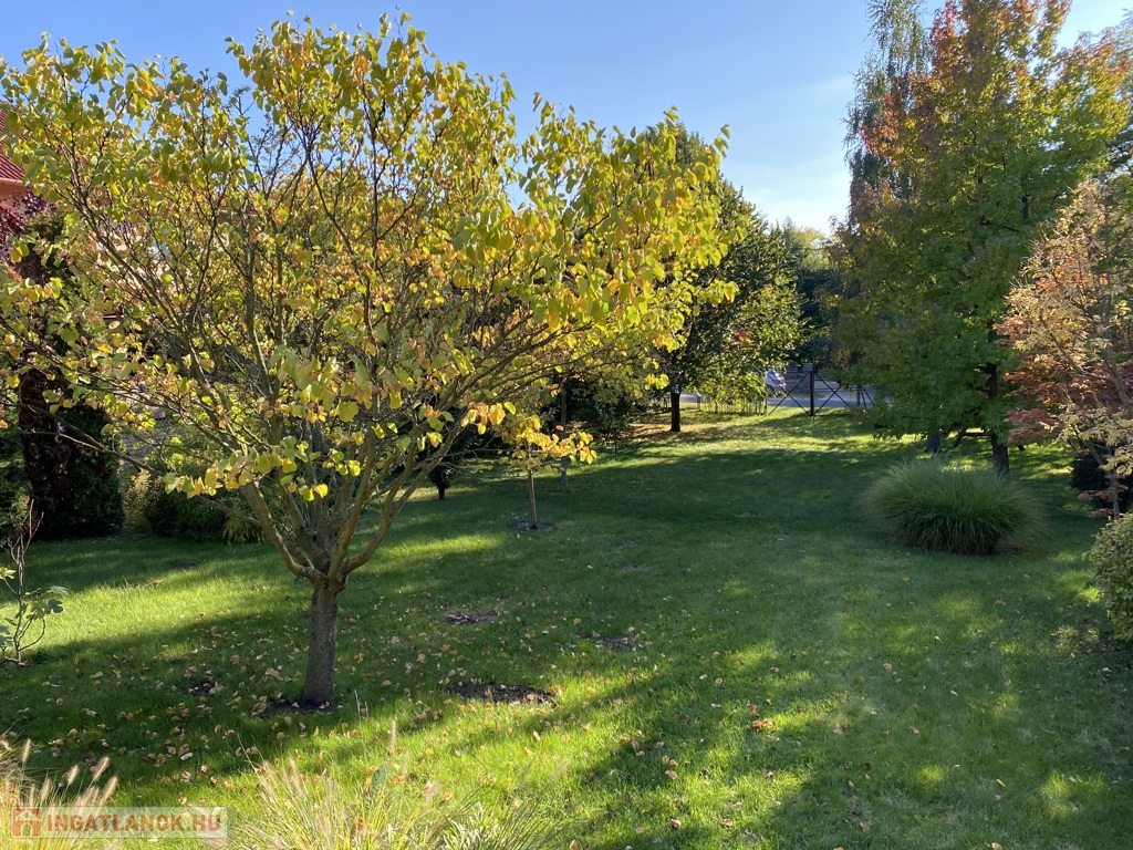 Telek leírása: a környék egyik legnagyobb és egyik legszebb kertje 1295 nm-en, melyen található egy szerszámtároló faház, rengeteg díszfa, gyümölcsfa, zöldellő bokor, sövény, virág, viacolorral burkolt több gépkocsi számára beálló, 2 kocsi részére fedett beálló. Fúrt kútból, 11 körös automata öntözőrendszer végzi a locsolást.