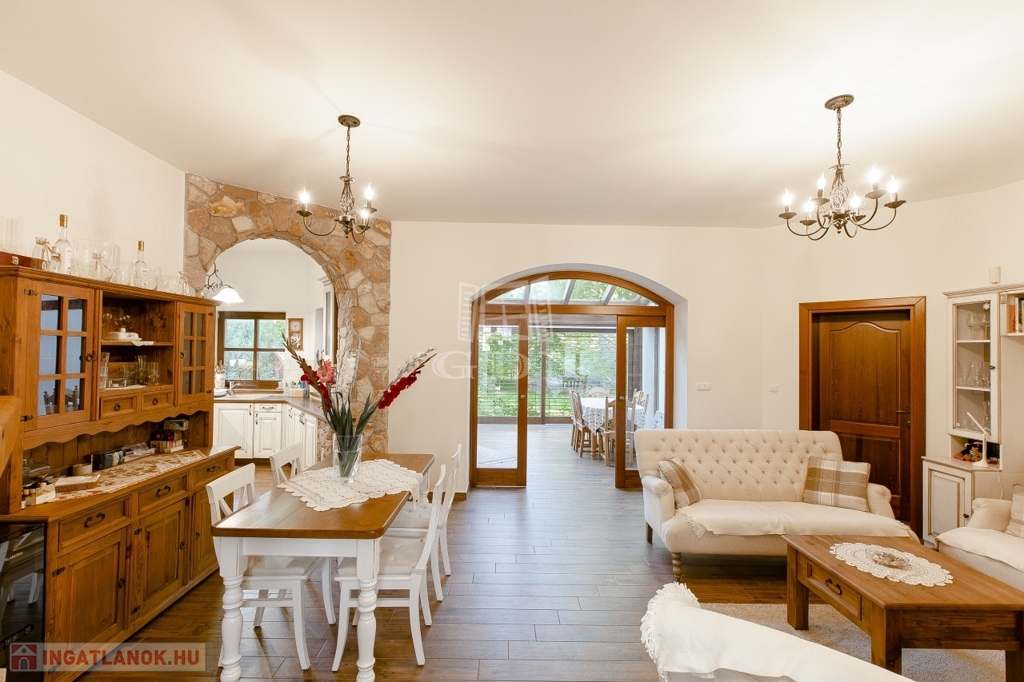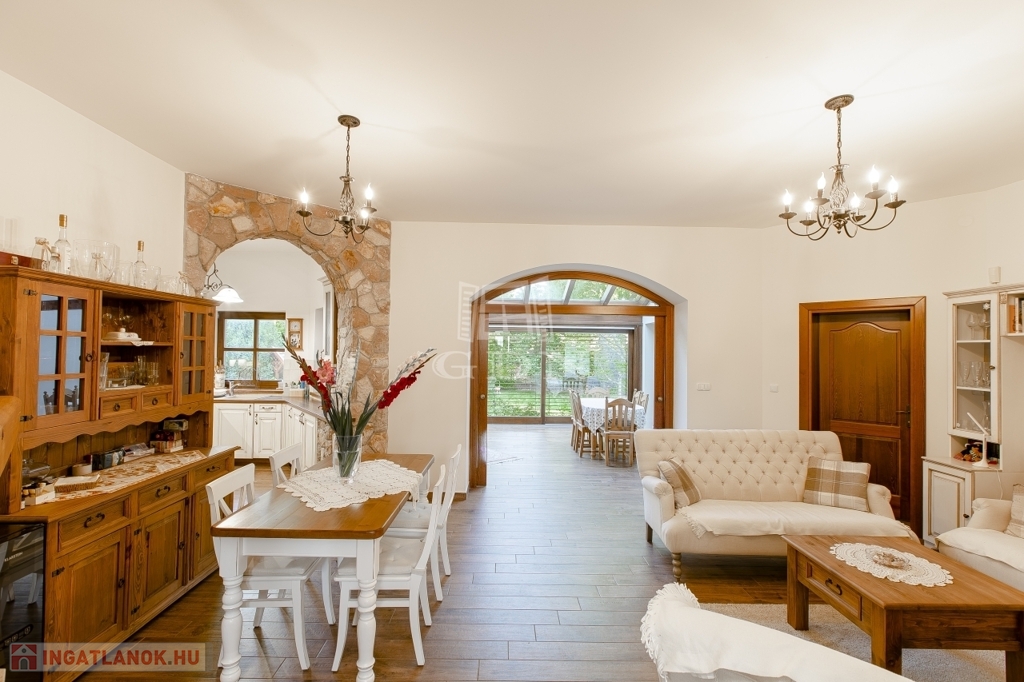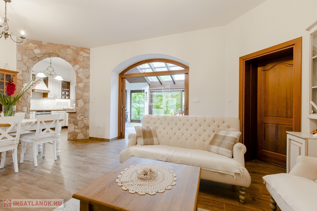 - Kandalló a nappali központjában, amely otthonos, elegáns hangulatot teremt.