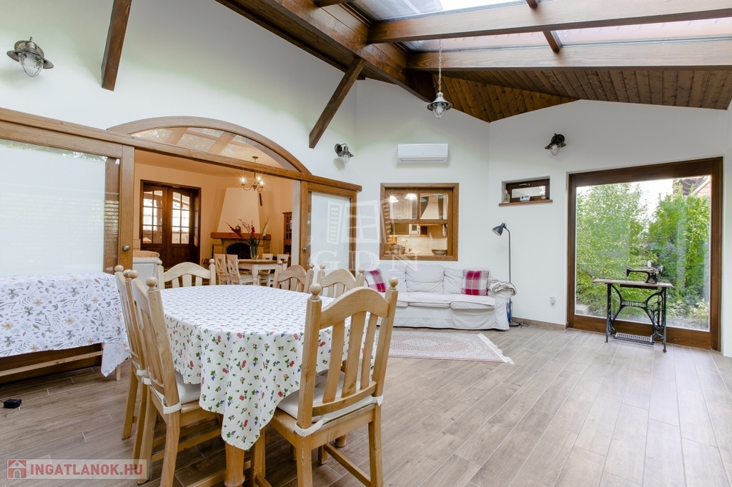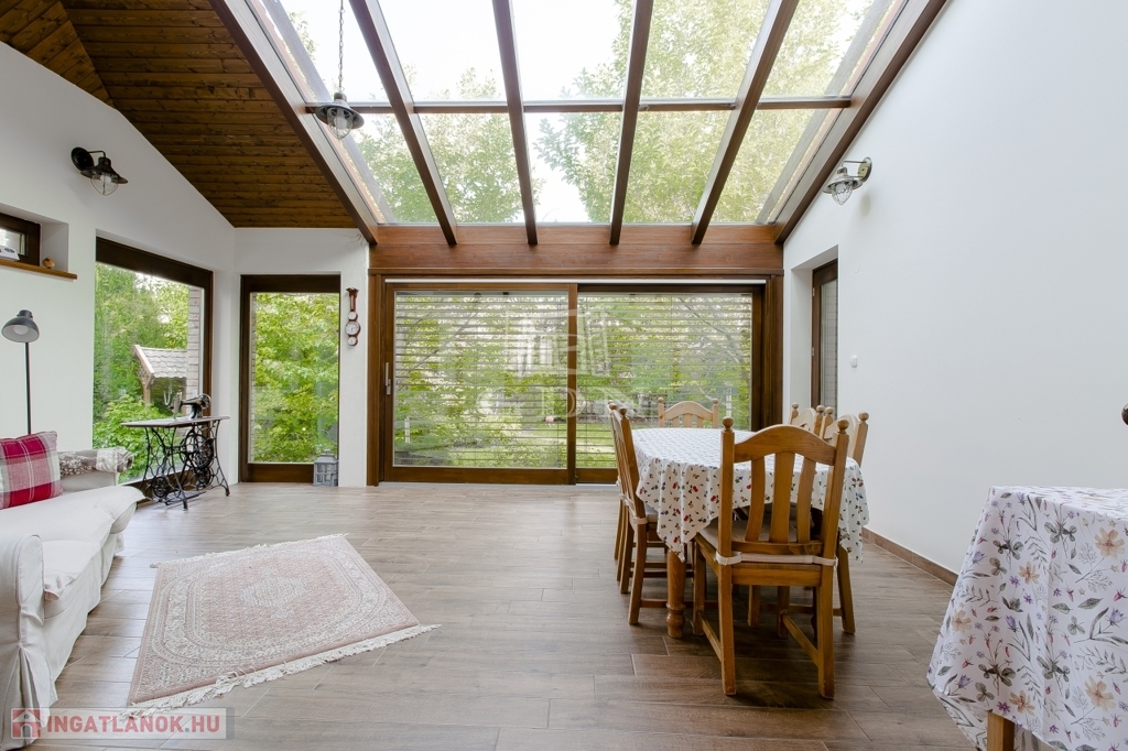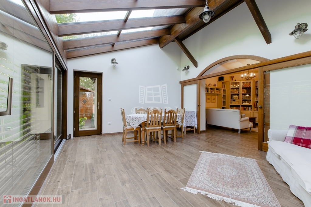 - Tágas télikert elektromos zsaluziával és árnyékolással – egész évben élvezhető élettér.