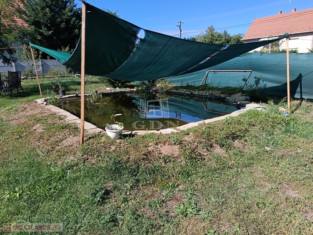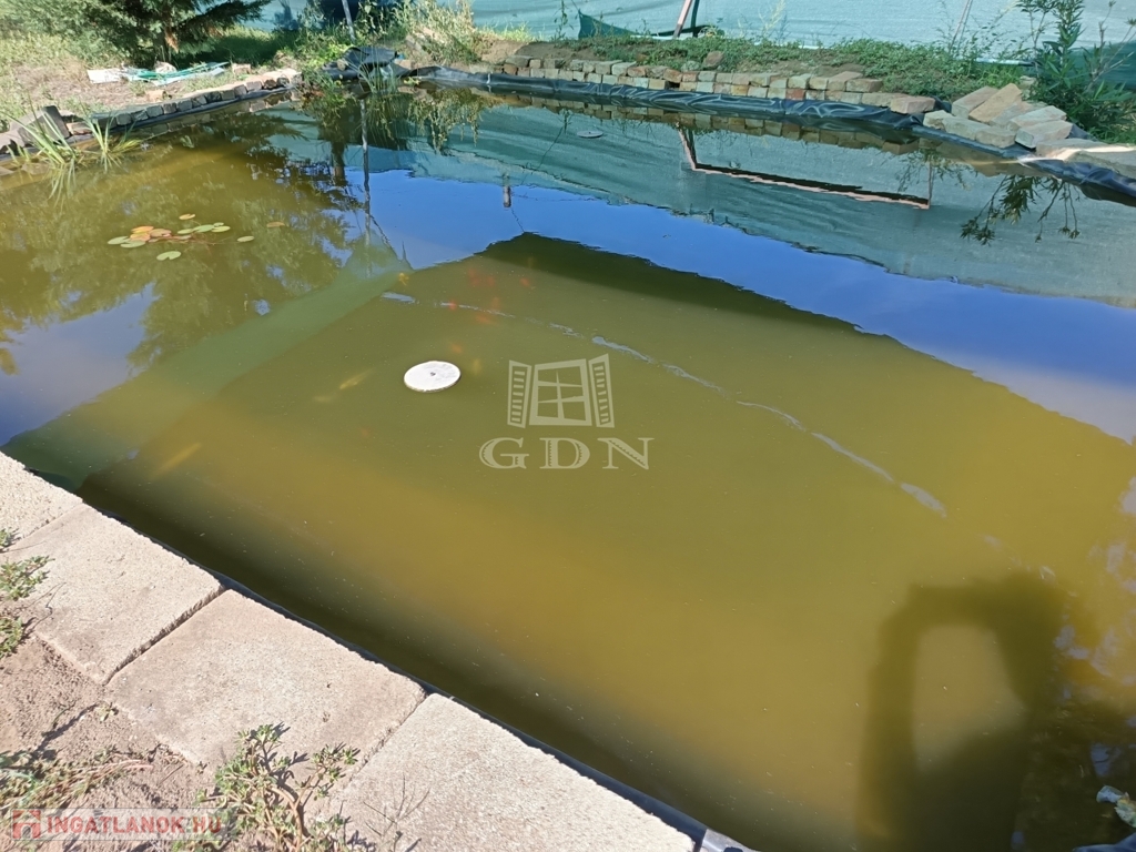Az udvaron kialakításra került egy halastó, amelyet gyümölcsfák, virágok vesznek körbe.