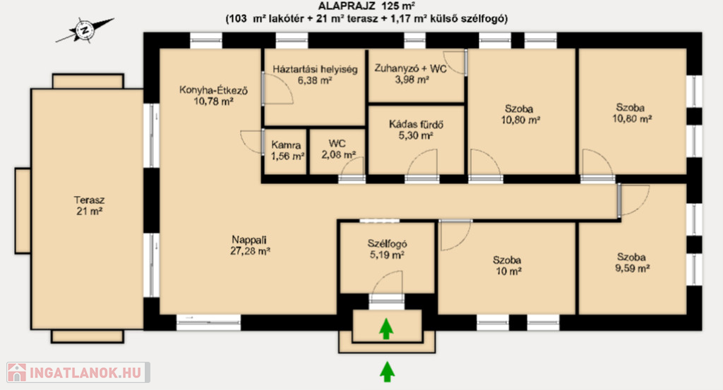 Terasz: 21 m², ÉNY-i tájolással, intim saroktelek.