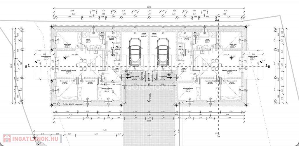 ELRENDEZÉS (mindkét lakás azonos alaprajzzal):