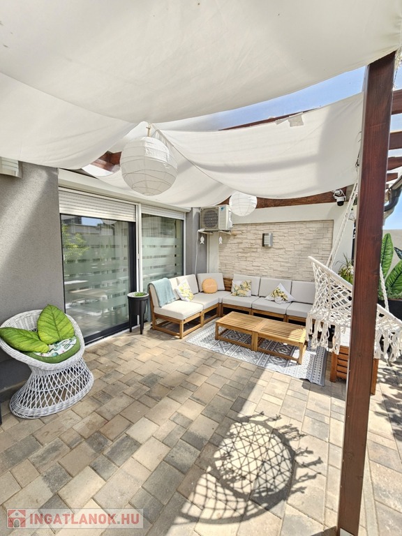 Képzeld el, ahogy egy nyári reggelen kilépsz a nappaliból a tágas, 37 m²-es fedett teraszra. A madarak csicseregnek, a kert zöldje nyugalmat áraszt, kezedben egy csésze kávé. Ez a pillanat a tiéd – és mostantól minden reggeled ilyen lehet.