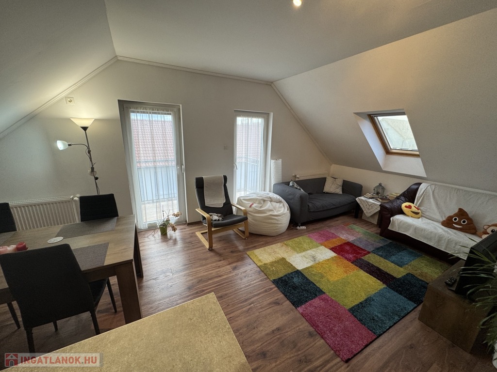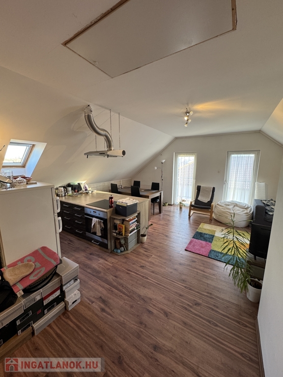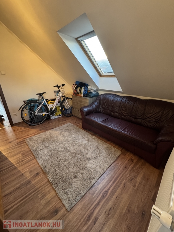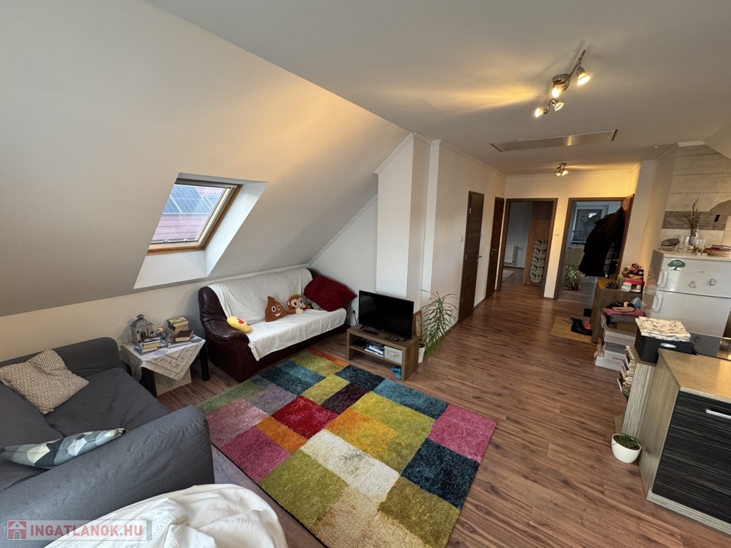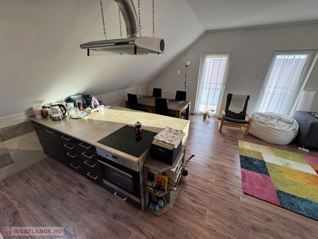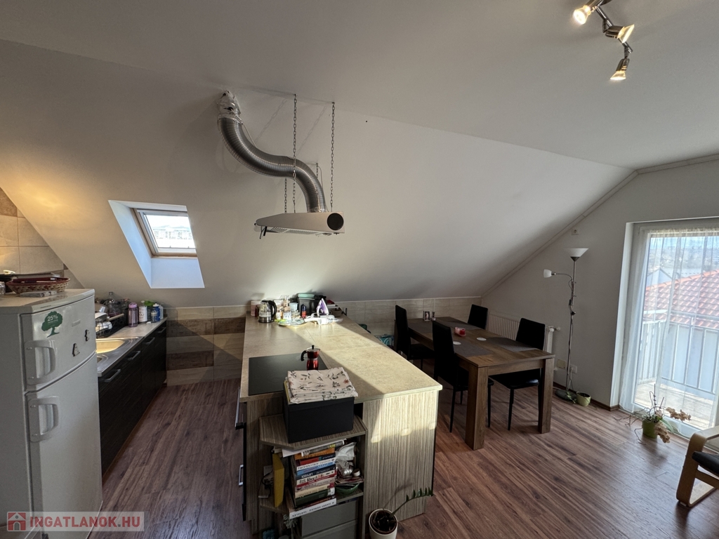 Tetőtér: amerikai konyhás nappali erkélykapcsolattal, 2 szoba, fürdő, külön WC.
