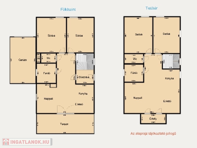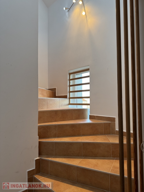 Földszint: amerikai konyhás nappali teraszkapcsolattal, 2 szoba (egyik klímás), fürdő, külön WC, garázs.