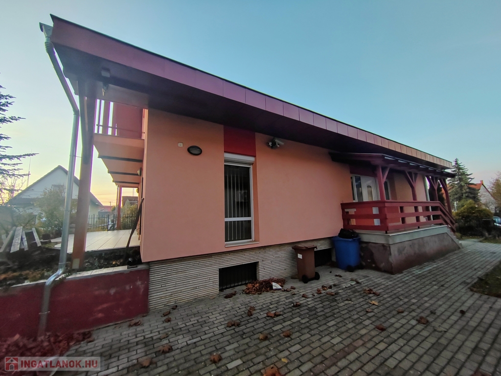 A szigetelt tégla építésű ház 673 nm telekterületen helyezkedik el , igényes, elektromos kerítésen bejutva az első kertrészből érkezünk a bejárathoz amelyhez tartozik egy fedett terasz és erről az oldalról közelíthető meg a 2 állásos garázs valamint lehetőség van több autó parkolására az udvar méretéből adódóan.